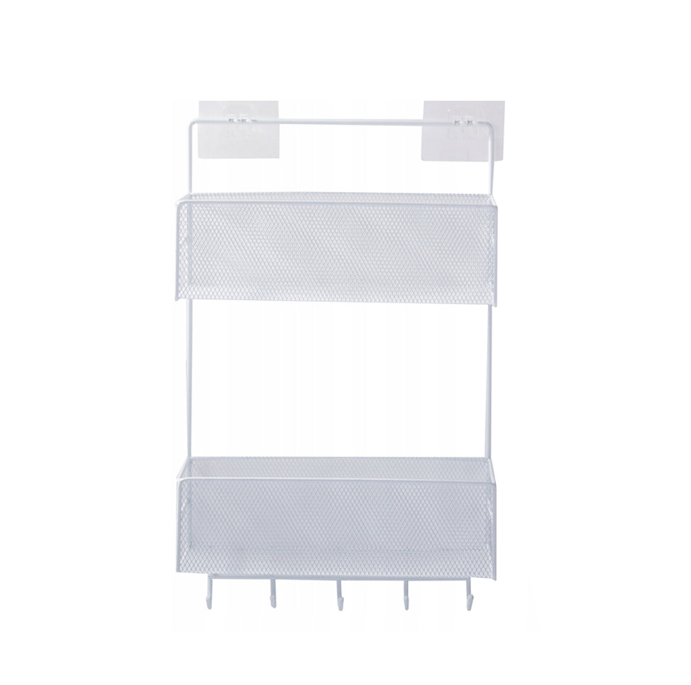 RESIGILAT-Raft organizator pentru dus, Zola, 2 cosulete, 5 carlige, din metal, 42x26x14 cm, alb