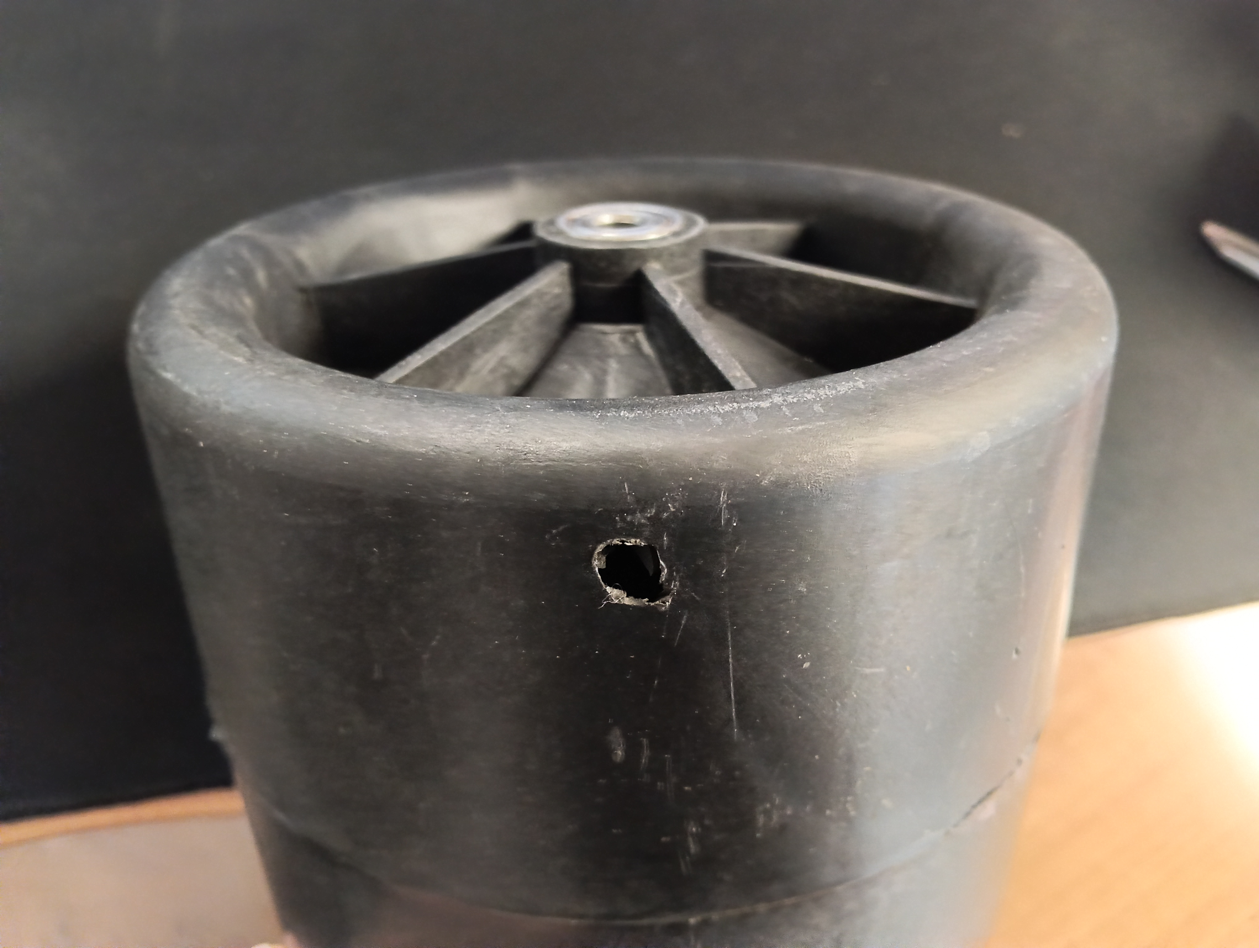 Defect estetic: una dintre roti prezinta o mica gaura la nivelul suprafetei. Defectul este doar vizual, nu afecteaza functionalitatea produsului.