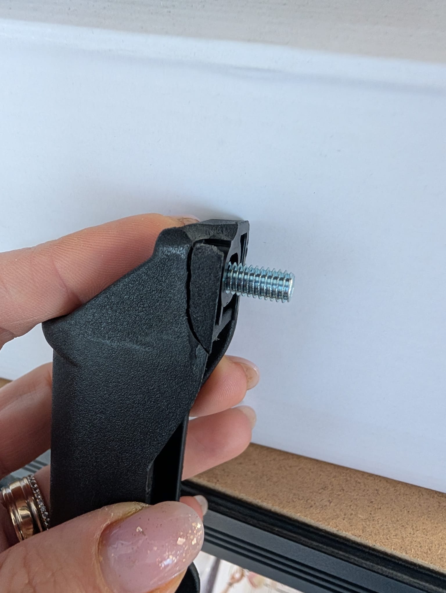 Singurul defect identificat este la una dintre piesele din partea de jos a scaunului, conform imaginii prezentate. Aceasta piesa are rolul de a sustine perna pentru picioare, insa defectul nu afecteaza stabilitatea, fixarea sau functionarea pernei si nici utilizarea scaunului.