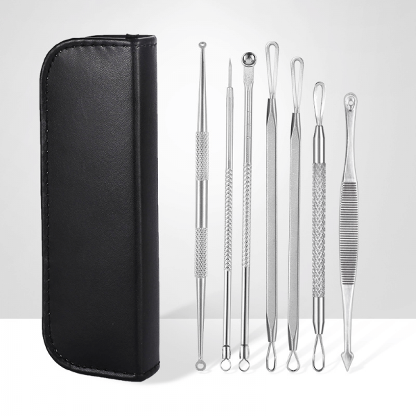 Trusa 7 instrumentre, Zola®,din inox, pentru cosmetica, extractia comedoanelor si a punctelor negre, trusa depozitare negra