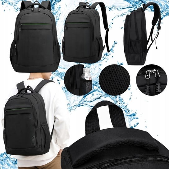 Rucsac adolescenti, Zola®, 2 compartimente, 4 buzunare, 2 buzunare laterale, rezistent la apa, curele reglabile, ideal pentru calatorii si scoala, 42 x 32 x 15 cm, negru cu insertii verzi