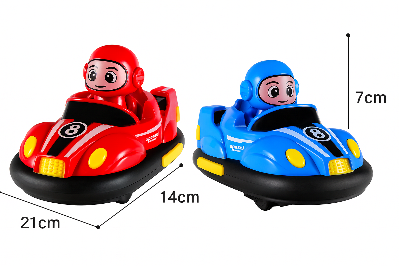 Fiecare masina are dimensiunile de 21 x 13.5 x 13 cm, fiind solida, stabila si spectaculoasa, cu un design atractiv in culori vii – rosu si albastru – care atrag imediat atentia. Constructia rezistenta asigura durabilitate si siguranta chiar si in timpul coliziunilor, astfel incat copiii se pot juca fara griji.