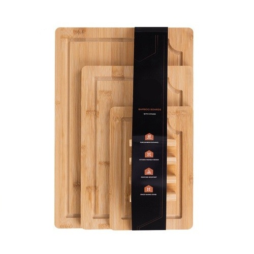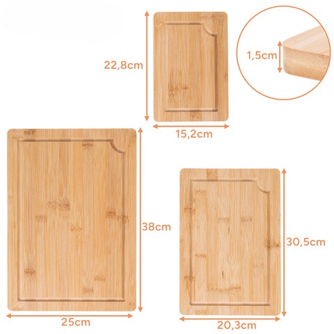 Functionalitate completa in bucatarie Setul include trei tocatoare de marimi diferite, ceea ce iti permite sa folosesti placi separate pentru carne, legume, fructe sau paine, mentinand igiena si evitand amestecarea mirosurilor si a sucurilor alimentare.