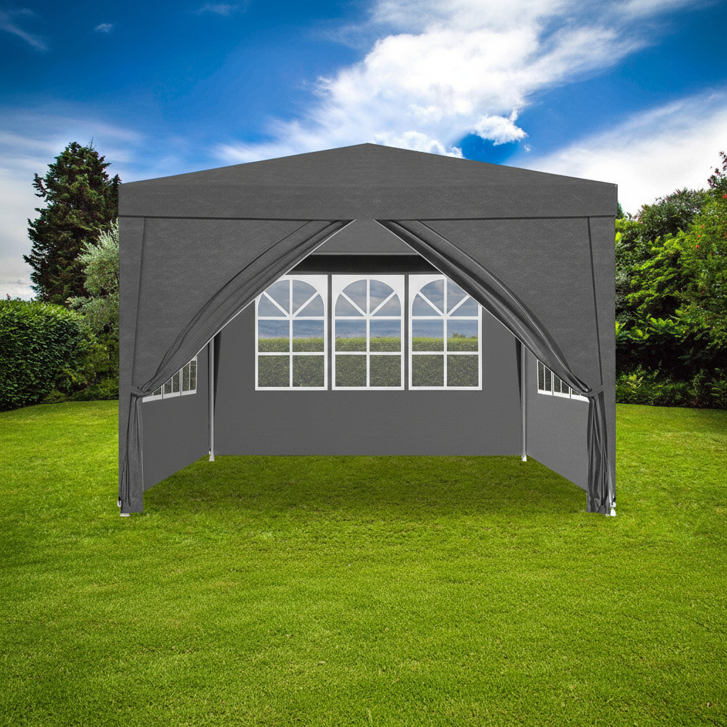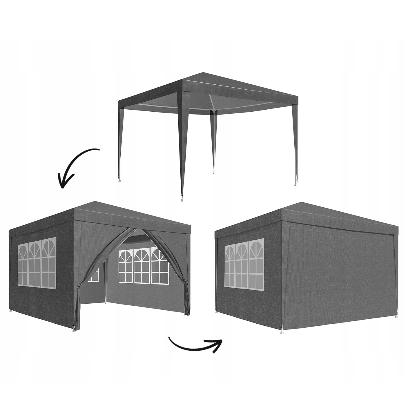 Set 4 laterale pentru cort/pavilion gradina, Zola, 300 x 200 cm, 3 geamuri 178 x 100 cm, intrare cu fermoar, polietilena, 100 g/m², gri inchis