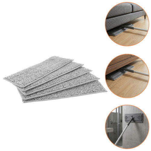 Set 5 rezerve mop plat, Zola, absorbante, fibre microactive, fixare velcro, poliester / bumbac, 33 x 12 cm, gri