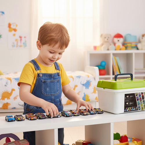 Un adevatat paradis pentru micii colectionari si pasionati de masinute! Acest set impresionant de 50 de masinute de curse colorate si variate este alegerea perfecta pentru joaca zilnica, competitii amuzante si dezvoltarea abilitatilor motorii ale copilului. Fiecare masinuta este realizata cu atentie la detalii, are un design atractiv si functioneaza prin sistemul pull-back and release, ceea ce ofera o experienta dinamica si distractiva. Totul este organizat intr-o valiza practica, usor de transportat si perfecta pentru depozitare, calatorii sau pentru pastrarea colectiei intr-un loc ordonat.