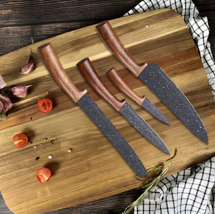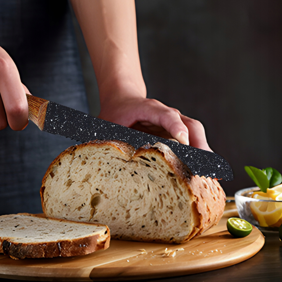 Setul este conceput pentru utilizare zilnica si este potrivit atat pentru gatitul simplu de zi cu zi, cat si pentru preparate mai complexe. Fie ca pregatesti legume, carne, paine sau ingrediente pentru salate si retete elaborate, cutitele din acest set ofera precizie, control si eficienta in fiecare taietura.