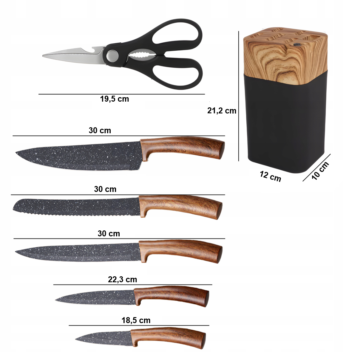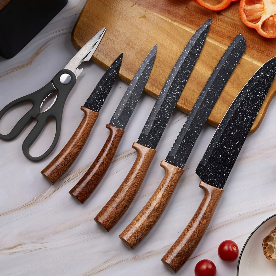 Acest set de cutite bucatarie cu suport si ascutitor integrat reprezinta o combinatie ideala intre performanta, organizare si design. Datorita varietatii de cutite incluse si suportului practic, vei avea mereu la indemana instrumentul potrivit pentru orice preparat, iar gatitul devine mai rapid, mai precis si mai placut.