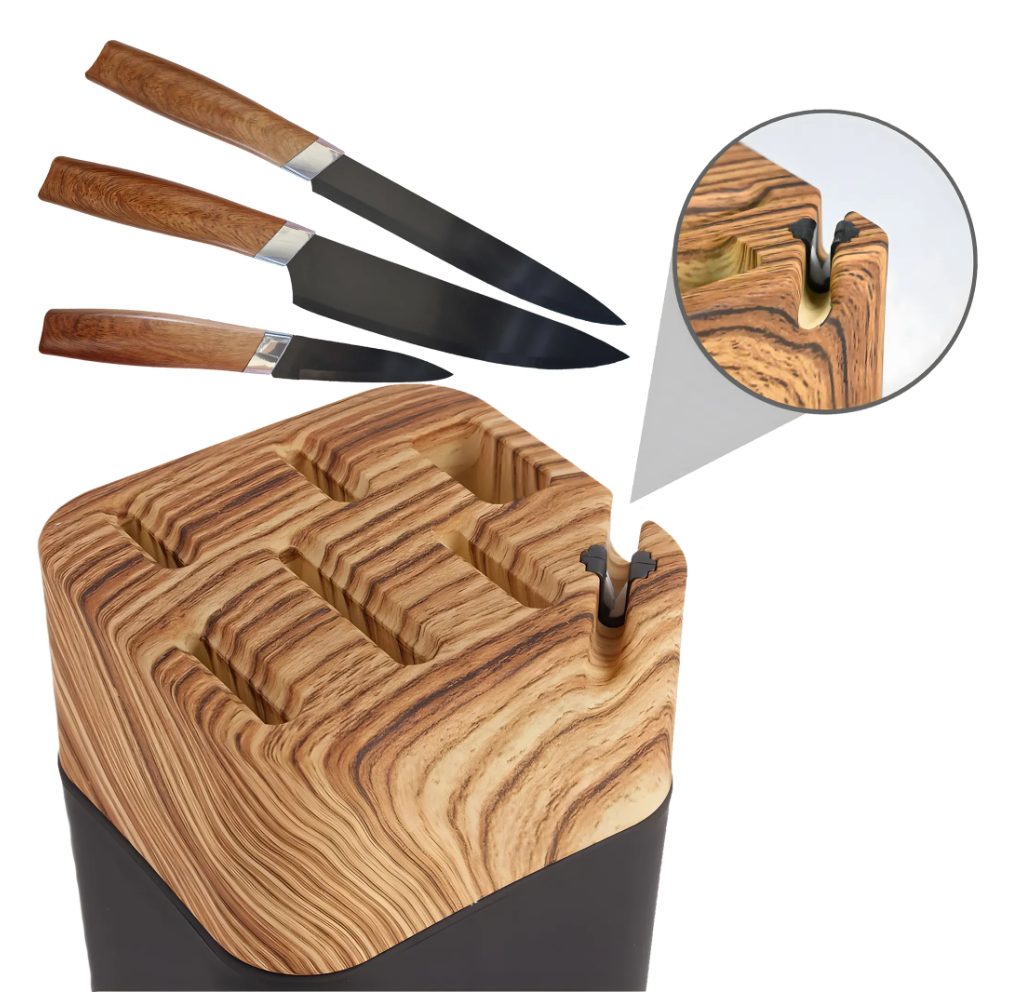• Organizare practica – fiecare cutit are locul sau in suport, astfel incat bucataria ramane ordonata si cutitele sunt usor accesibile