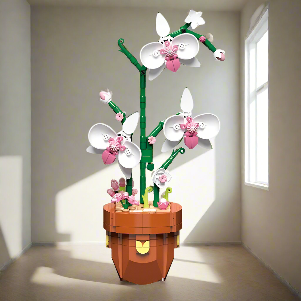 Setul include 379 de piese din plastic ABS de inalta calitate, care se imbina cu precizie pentru a da nastere unei orhidee detaliate, cu flori, muguri si frunze redate fidel. Ghiveciul inclus adauga un plus de rafinament, datorita detaliilor decorative care imita perfect un ghiveci real. Intregul ansamblu este conceput pentru a se integra armonios in orice spatiu, aducand o nota de prospetime si stil fara a necesita intretinere.