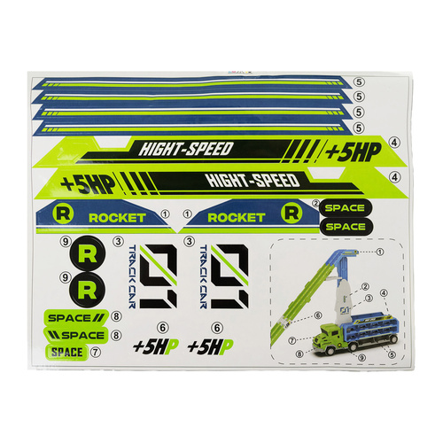 Decorati camionul si pista cu autocolantele incluse pentru o experienta personalizata.