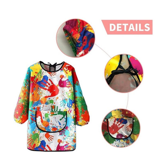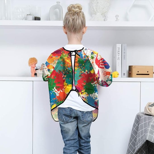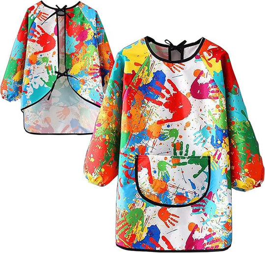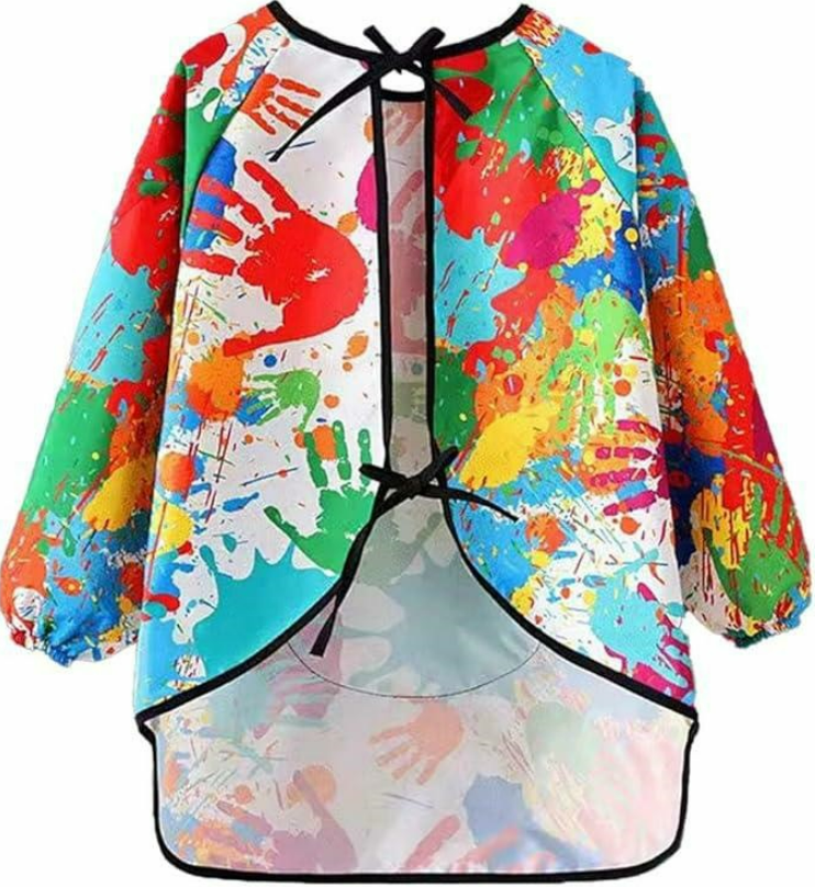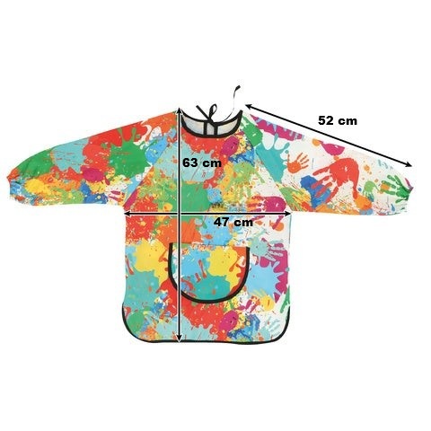 Realizat din poliester si PVC, este foarte durabil, flexibil si simplu de curatat – ideal pentru utilizarea frecventa. Mânecile lungi cu mansete elastice ofera protectie suplimentara, prevenind murdarirea bratelor, iar inchiderea cu velcro la spate face ca sortul sa fie rapid si usor de imbracat sau dezbracat, fara ajutorul unui adult.