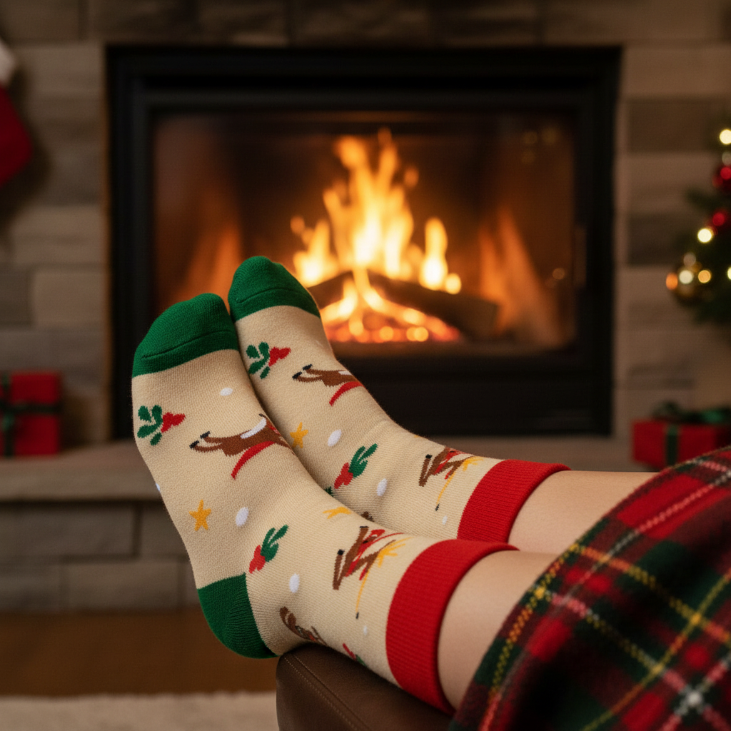 Fabricate din tesatura tricotata cu bumbac, poliester si elastan, aceste sosete de Craciun sunt placute la atingere si asigura un confort sporit pe tot parcursul zilei. Materialul este cald, respirabil si flexibil, astfel incat se adapteaza perfect formei piciorului. Manseta elastica le mentine stabile fara sa stranga si fara sa creeze disconfort, fiind potrivite chiar si pentru purtari indelungate.