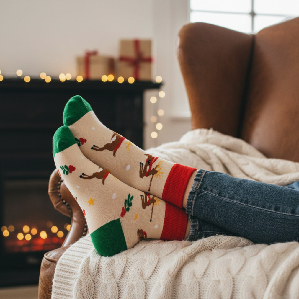 Sosetele cu tematica de Craciun sunt accesoriul perfect pentru zilele reci, aducand un plus de confort, caldura si veselie oricarei tinute. Modelul cu reni si elemente festive transforma fiecare purtare intr-o experienta placuta, iar materialul moale si flexibil le face ideale pentru purtare zilnica. Concepute pentru femei si tineret, aceste sosete unisex sunt potrivite pentru orice garderoba si pot deveni rapid un element preferat in sezonul sarbatorilor.