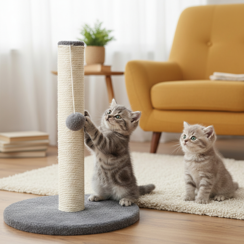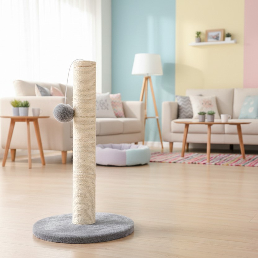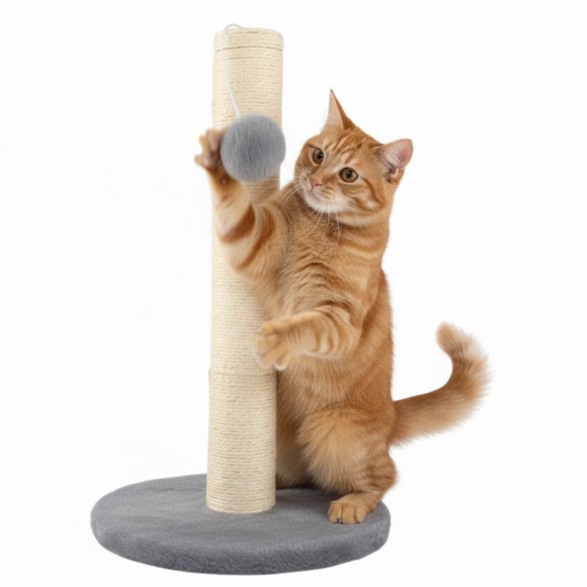 Suportul pentru ascutit gheare si jucarie pentru pisici este un accesoriu esential pentru orice locuinta in care traieste o pisica activa. Conceput pentru a satisface instinctul natural de zgariere si joaca, acest stalp ajuta la protejarea mobilierului si ofera pisicii un spatiu dedicat pentru consumul de energie si relaxare. Designul modern, in nuante de gri si bej, il face usor de integrat in orice incapere.