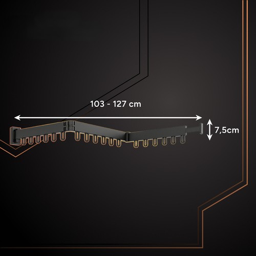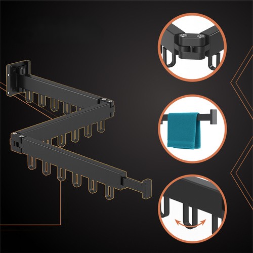 Suport de umerase 2 in 1 pentru uscarea hainelor, Zola, pliabil, 18 carlige, 103-127 x 7.5 cm, fixare perete, aliaj aluminiu, negru