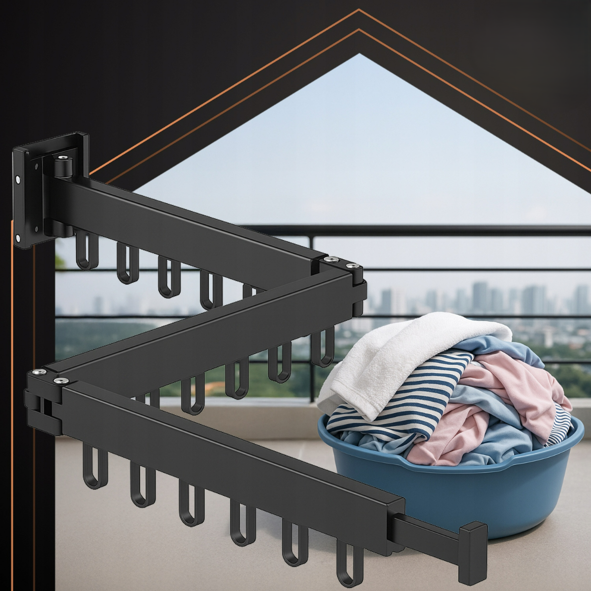 Suportul de umerase 2 in 1 pentru uscarea hainelor este alegerea ideala pentru cei care cauta functionalitate, economie de spatiu si durabilitate intr-un singur produs. Conceput special pentru a fi montat pe perete, acest uscator practic nu ocupa loc pe podea si ofera o solutie moderna pentru uscarea si depozitarea hainelor atat in interior, cat si in exterior. Datorita designului sau pliabil si extensibil, se adapteaza cu usurinta in functie de cantitatea de rufe, iar dupa utilizare se pliaza compact, ramanand discret si elegant in orice incapere. Este perfect pentru baie, balcon, spatiu de serviciu sau chiar dormitor, acolo unde fiecare centimetru conteaza.
