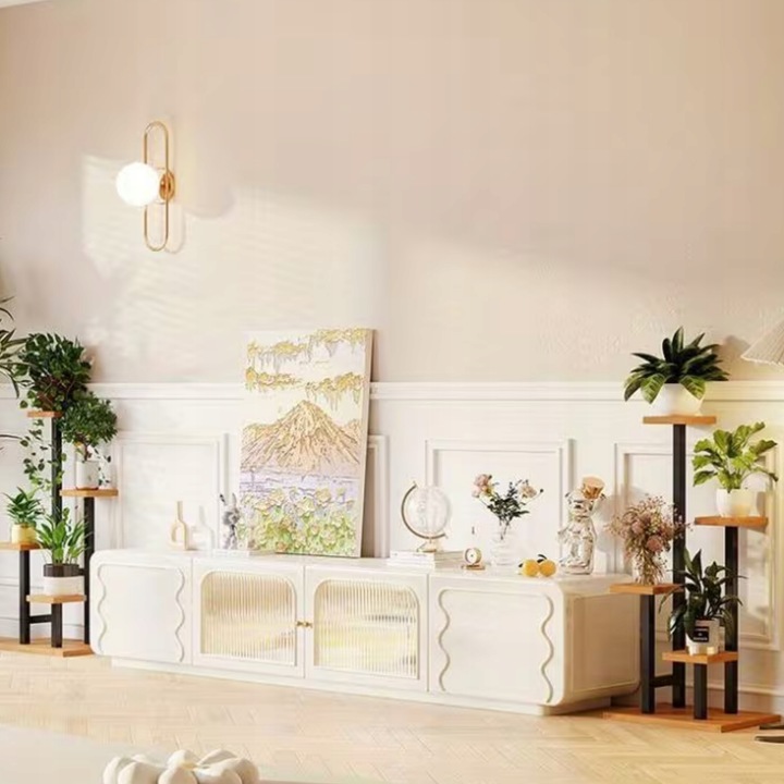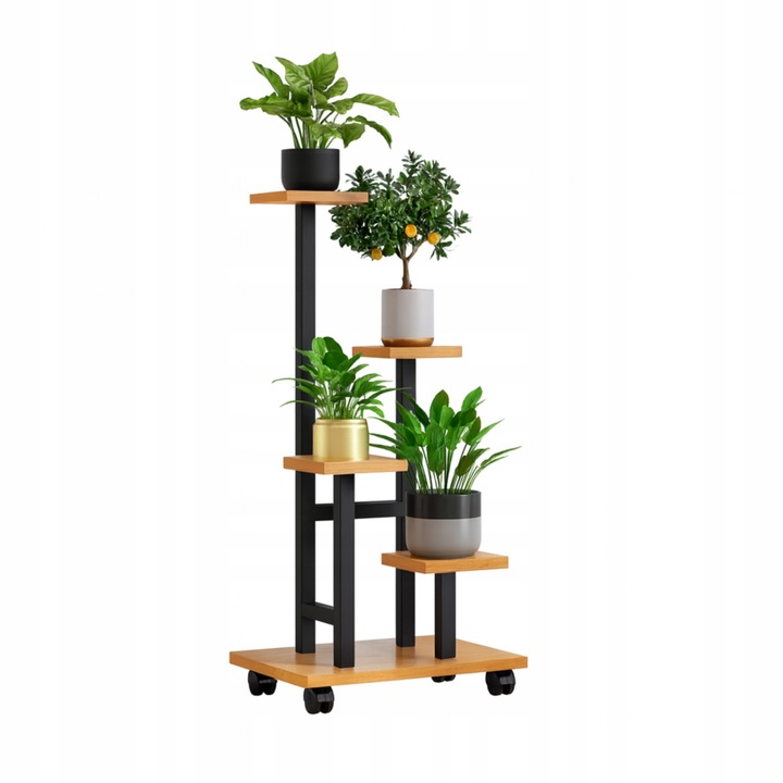 Acest suport pentru flori imbina functionalitatea cu estetica, fiind realizat din structura metalica rezistenta si polite din PAL cu aspect de lemn, usor de integrat in decoruri moderne, minimaliste sau clasice. Datorita rotilor pivotante, suportul poate fi mutat rapid ori de cate ori doresti sa schimbi pozitia plantelor sau sa cureti zona.
