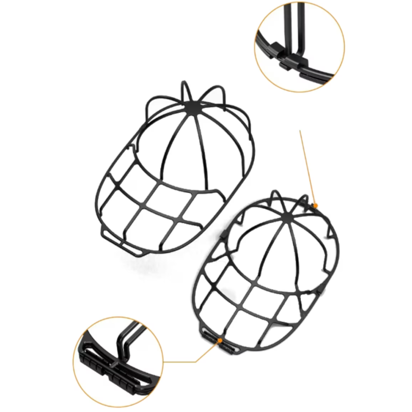 Suportul este prevazut cu cleme practice de fixare, care mentin sapca stabila si reduc riscul de indoire, sifonare sau deformare in timpul miscarii din masina de spalat. Este util mai ales pentru sepci de baseball sau modele cu cozoroc, unde forma este importanta si poate fi afectata usor daca produsul este spalat fara protectie.