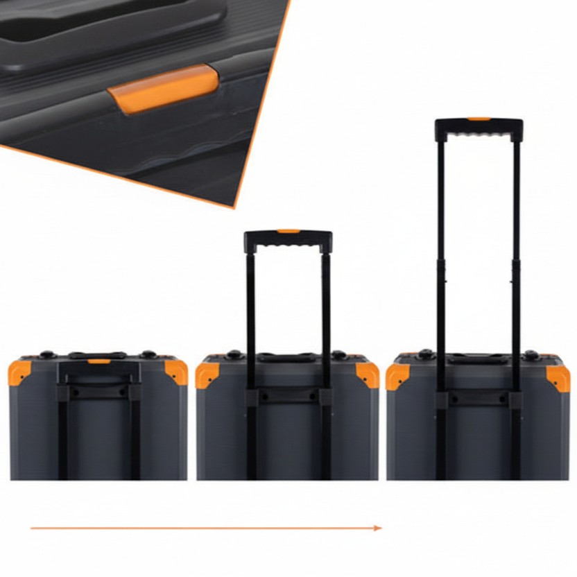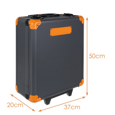 Trusa de scule XXL tip troler cu 1000 piese este o solutie completa si extrem de practica pentru orice tip de lucrare, fie ca este vorba de reparatii casnice, lucrari in atelier, interventii auto sau utilizare profesionala. Conceputa pentru a oferi organizare perfecta, mobilitate maxima si acces rapid la unelte, aceasta trusa impresioneaza prin dimensiuni, diversitate si calitatea materialelor. Valiza robusta din aluminiu, dotata cu roti si maner telescopic, transforma transportul unui set atat de complex intr-o operatiune usoara si confortabila.