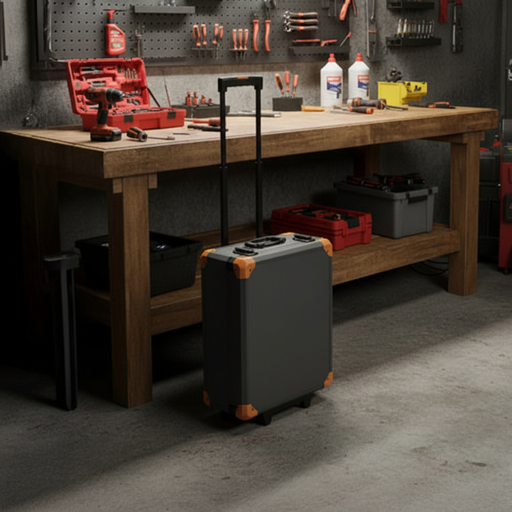 Valiza din aluminiu cu roti, ideala pentru lucrari mobile, service auto, santiere sau utilizare profesionala zilnica