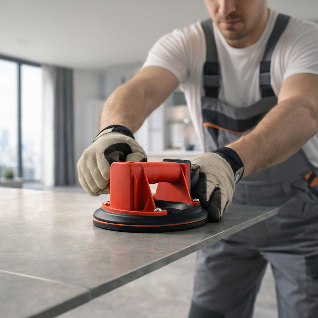 Aceasta ventuza cu pompa vid este un accesoriu profesional pentru manipulare placi, oferind siguranta, eficienta si control, fiind ideala pentru lucrari de precizie, montaj placi ceramice, ridicare sticla si panouri netede, atat in santier, cat si in atelier.
